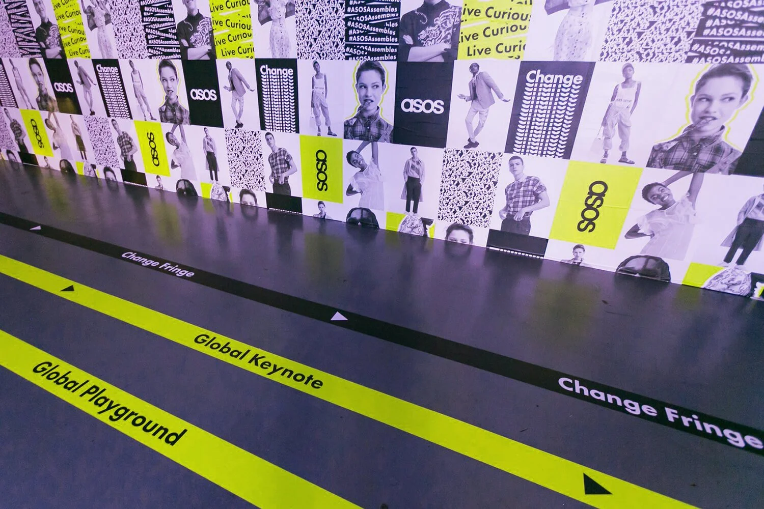 ASOS Assembles.Branding Alexandra Palace for a series of seminars and interactive forums to inspire and inform ASOS’ 2,500 members of staff, questioning how the company can have a positive impact in the world.