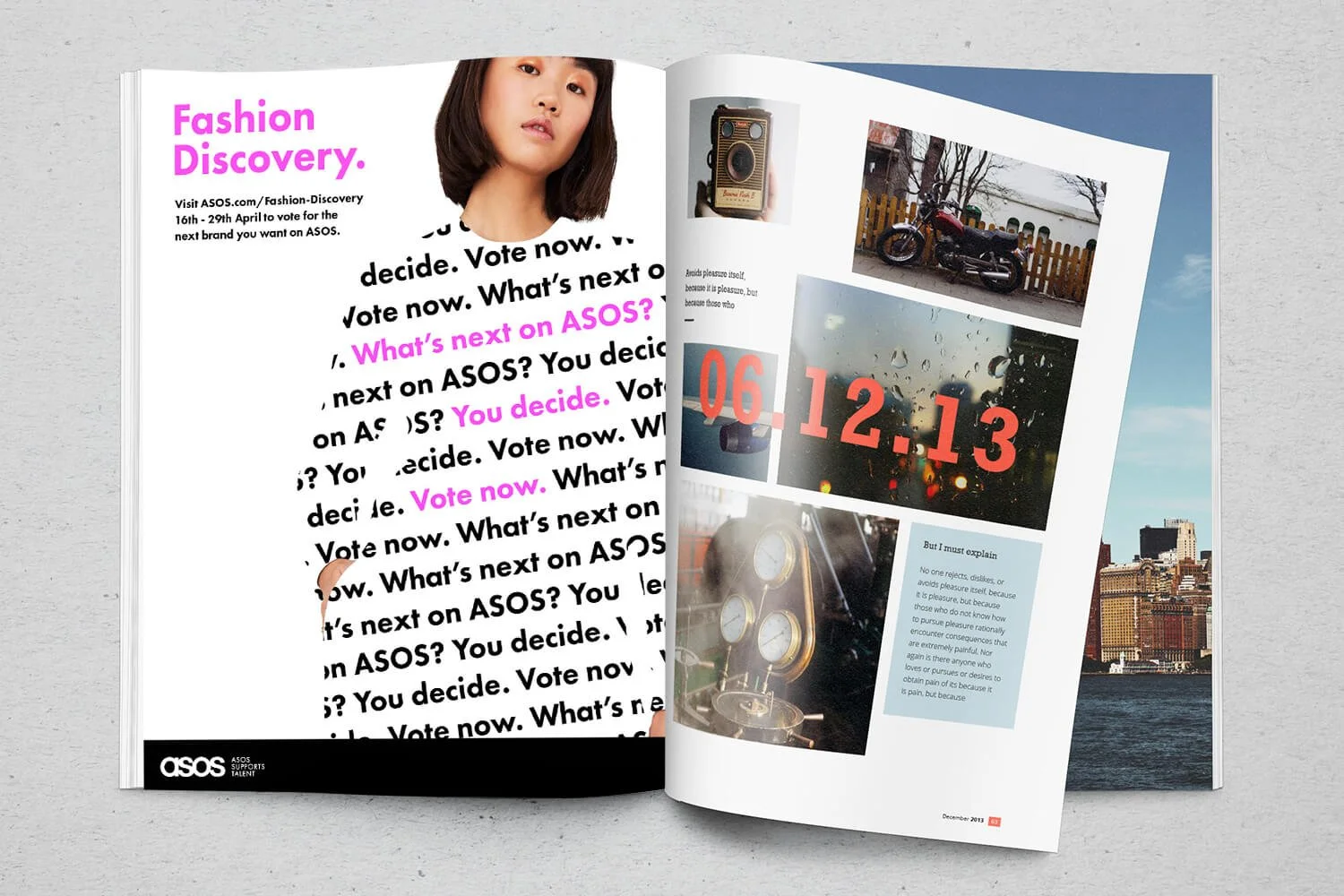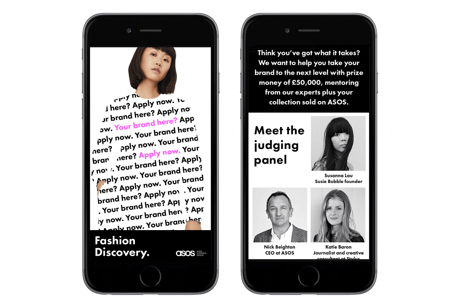 Fashion Discovery.Campaign concept, design and art direction for the Fashion Discovery competition in which ASOS find and showcase emerging designers, before allowing consumers to vote for who will be stocked on ASOS.com